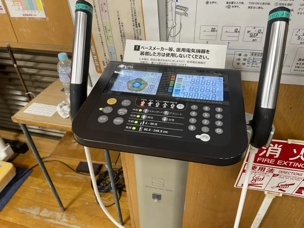 体脂肪や筋肉量、体水分や基礎代謝などを測定することができる測定器が設置されていました。