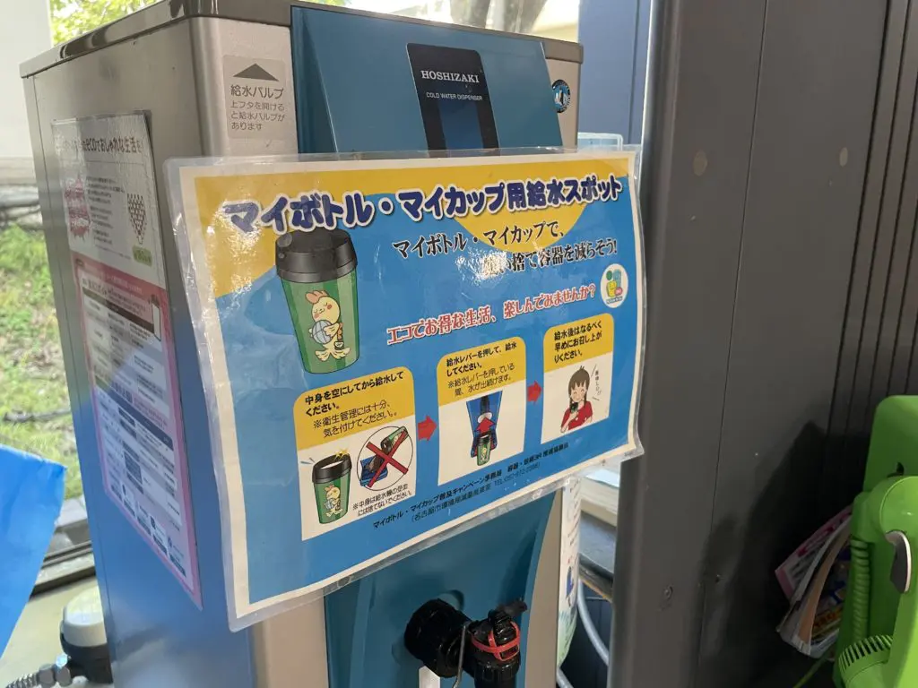 マイボトル・マイカップ用の給水スポットがあり無料で利用できます。環境にもお財布にも優しい。