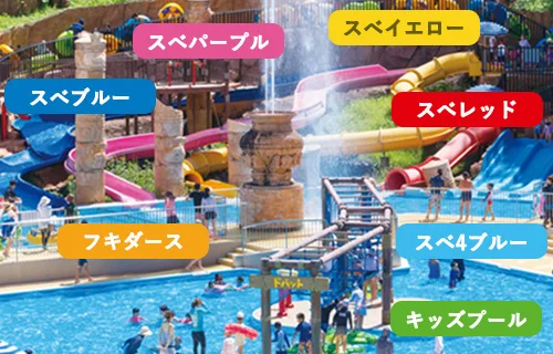 | 2 | ラグナシア プール(蒲郡市) | 屋外(テーマパーク) | 全長100m級スライダー2基、流れるプール | 3,000円~3800円 |