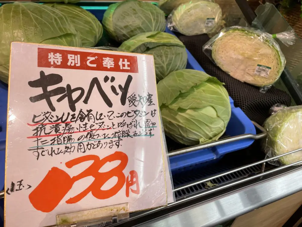 愛知県産キャベツです。1玉ではなく半玉での販売もあるので便利です。