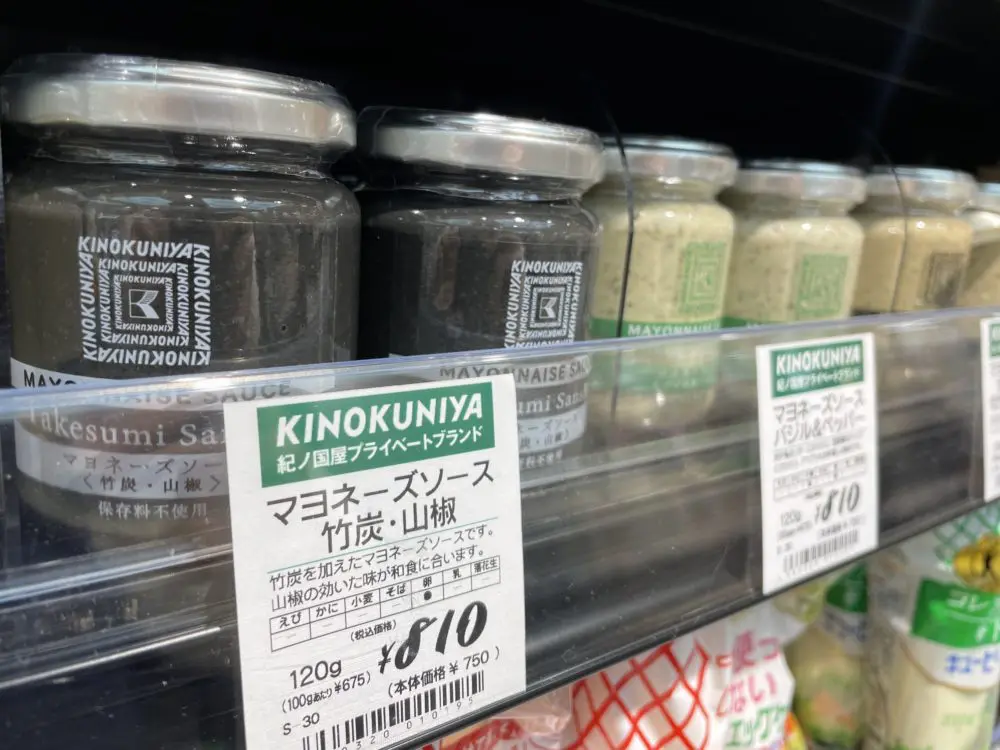 竹炭を加えた珍しいマヨネーズソースです。竹炭には吸着機能があり、腸内環境を整える働きがあるとされています。山椒の入った和食に合うマヨネーズソースです。他にもマヨネーズには多くの種類があり、バジル&ペッパー、チリなどがあります。